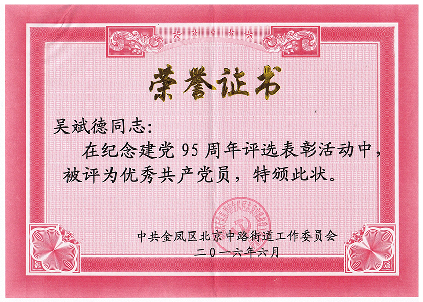 吳斌德榮獲優(yōu)秀共產(chǎn)黨員