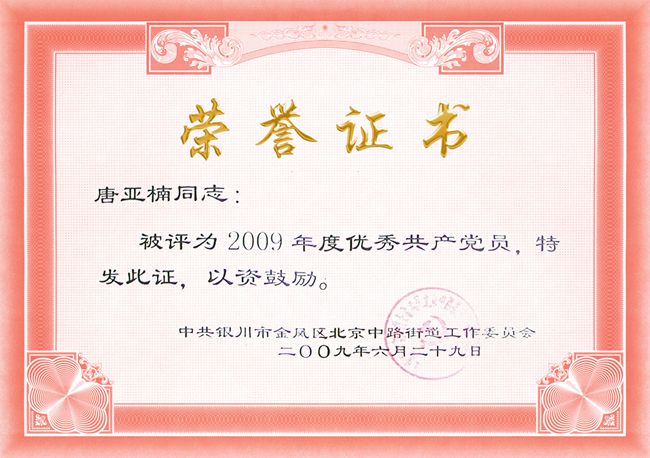 唐亞楠被評(píng)為優(yōu)秀共產(chǎn)黨員