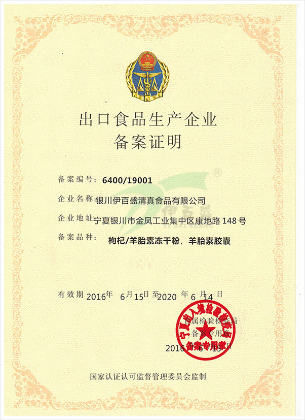 出口食品生產(chǎn)企業(yè)備案證明