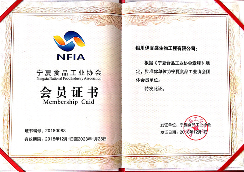 “寧夏食品工業(yè)協(xié)會會員單位”