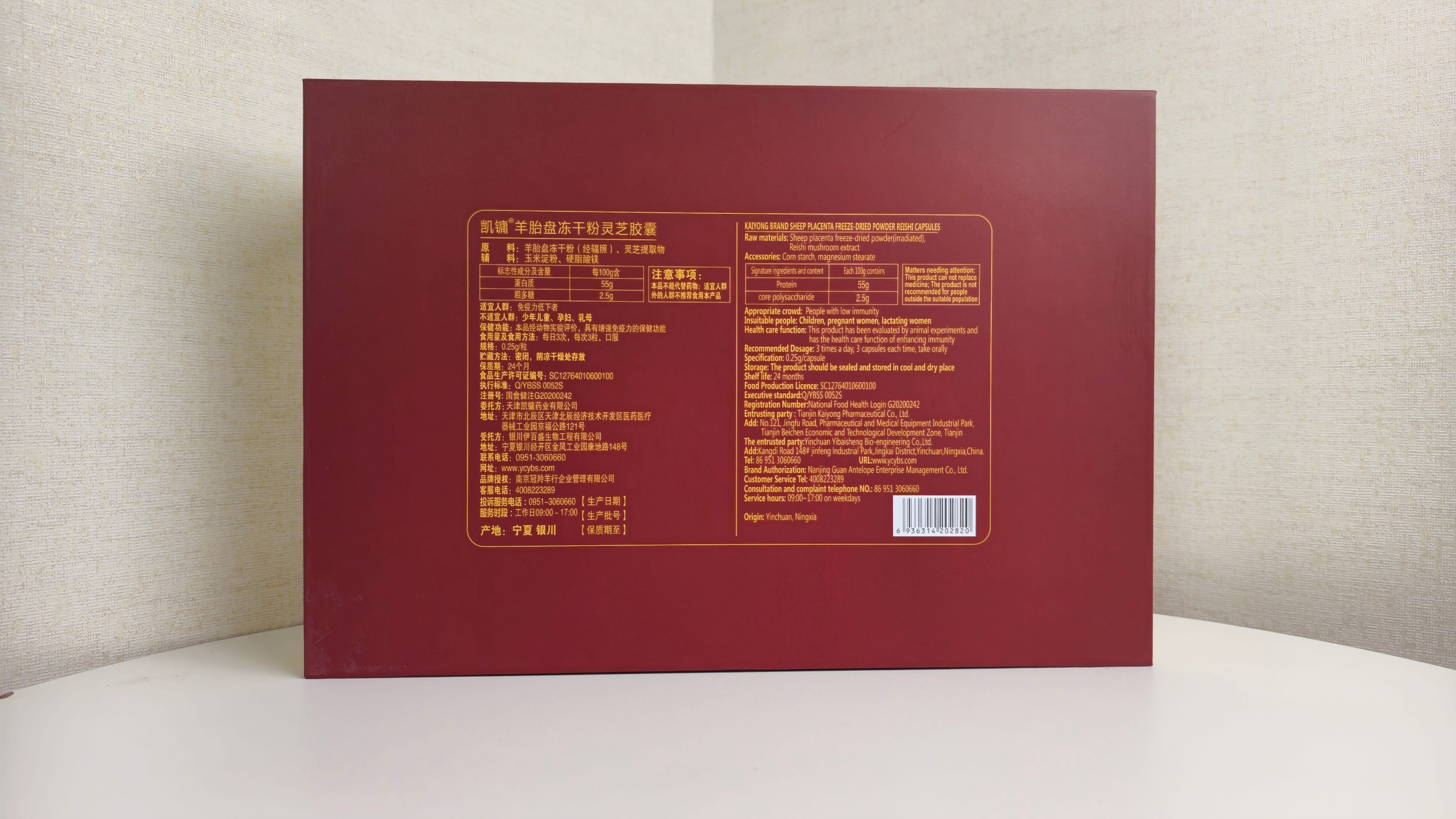 【原料】羊胎盤(pán)凍干粉(經(jīng)輻照)、靈芝提取物