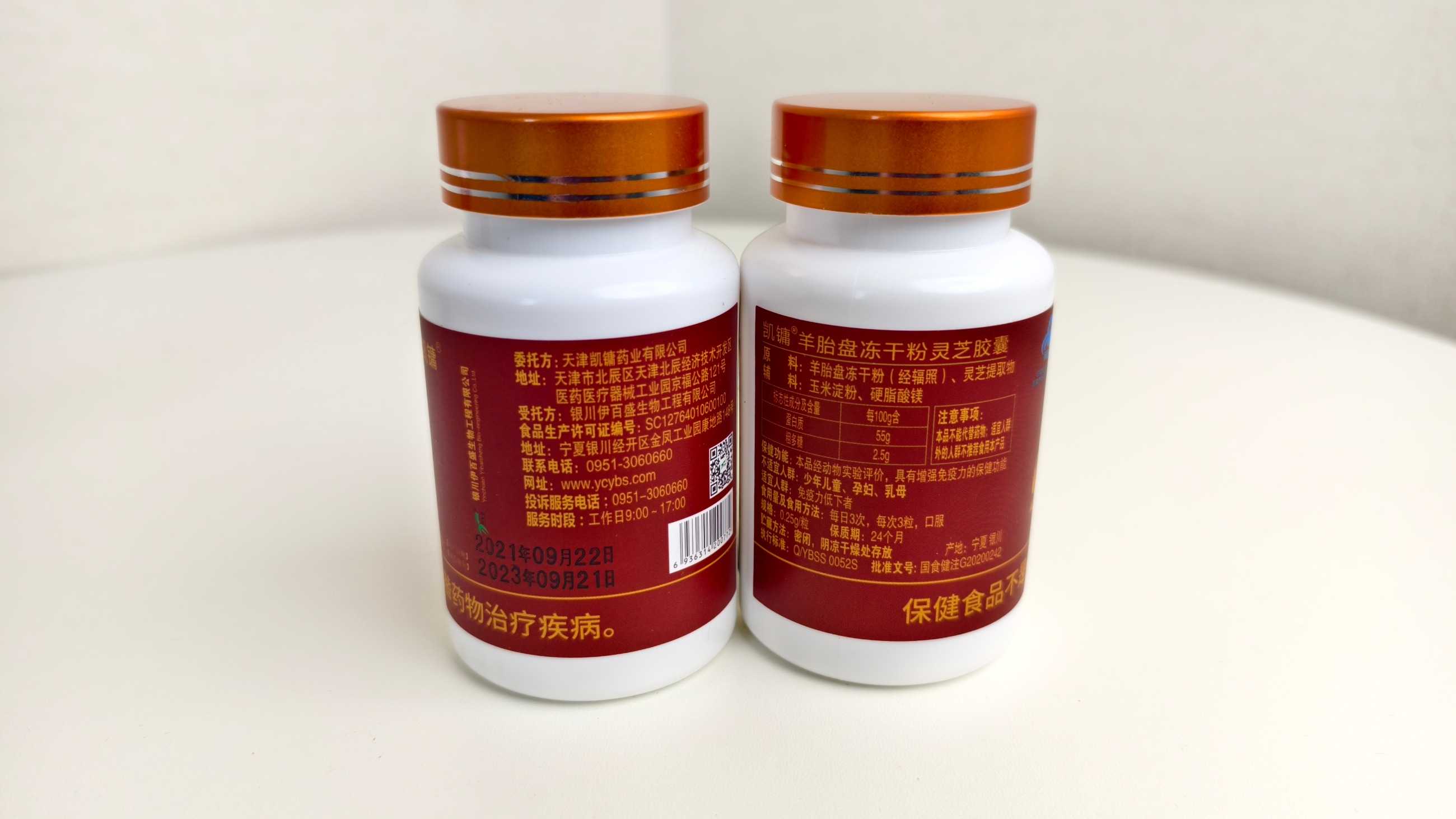 【原料】羊胎盤凍干粉(經(jīng)輻照)、靈芝提取物