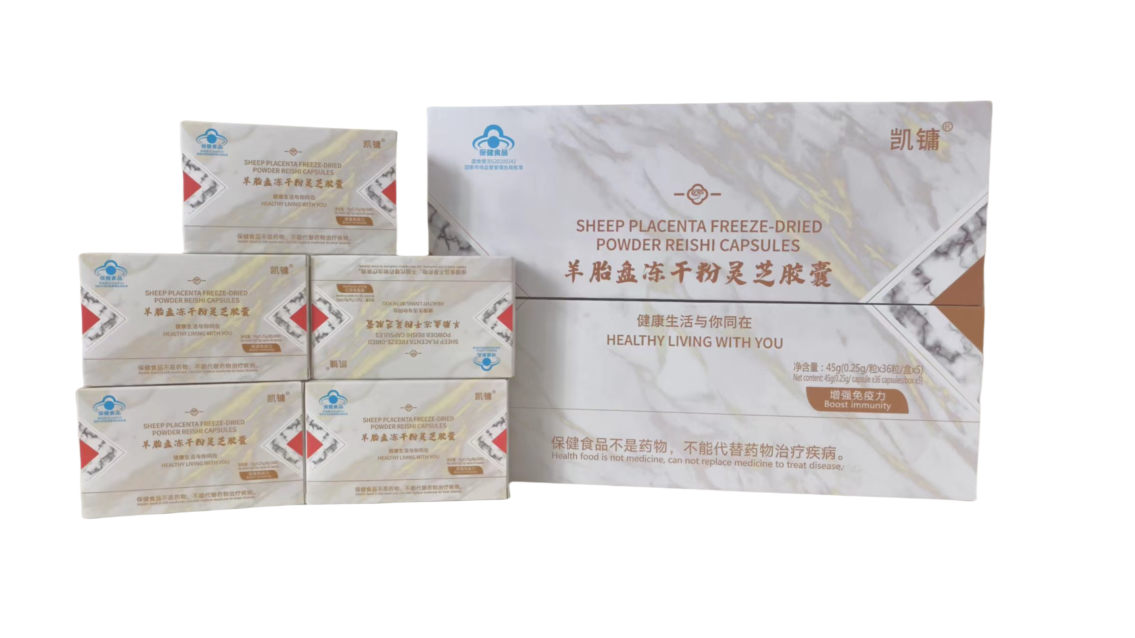 羊胎盤凍干粉靈芝膠囊【原料】羊胎盤凍干粉(經(jīng)輻照)、靈芝提取物【輔料】玉米淀粉、硬脂酸鎂【標志性成分及含量】每100g含:蛋白質(zhì)55g、粗多糖2.5g【適宜人群】免疫力低下者【不適宜人群】少年兒童、孕婦、乳母【保健功能】本品經(jīng)動物實驗評價,具有增強免疫力的保健功能【食用量及食用方法】每日3次,每次3粒,口服【規(guī)格】0.25g/?!举A藏方法】密閉,陰涼干燥處存放【保質(zhì)期】24個月【執(zhí)行標準】Q/BS
